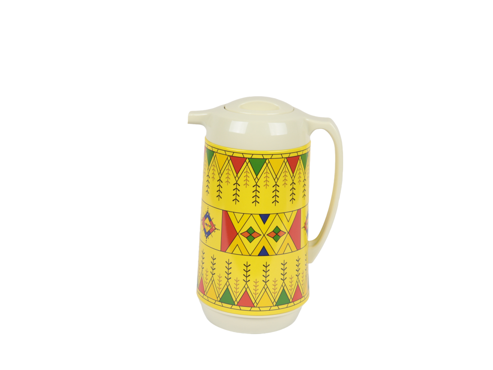 ترمس شاي او قهوة سعة 1 لتر, يتميز بتصميم يجمع بين الاصالة والاناقة حيث يعزز النقش تراثي الهوية السعودية الاصيلة, يحفظ الحرارة لساعات طويلة مما يجعله خيارا مناسبا للرحلات والجمعات العائلية