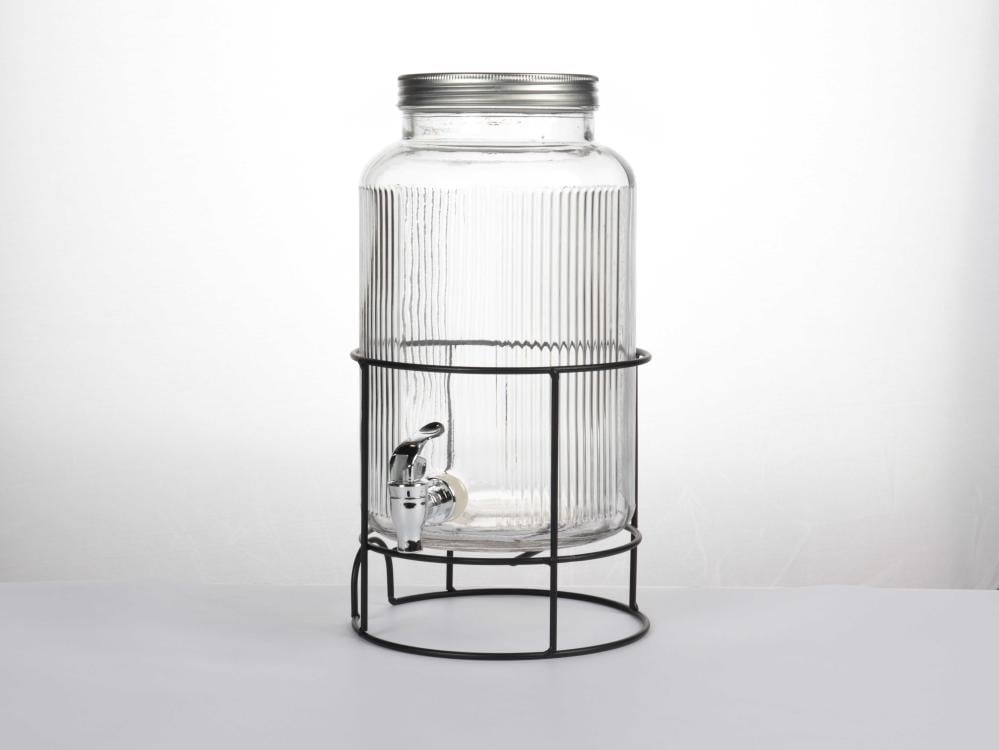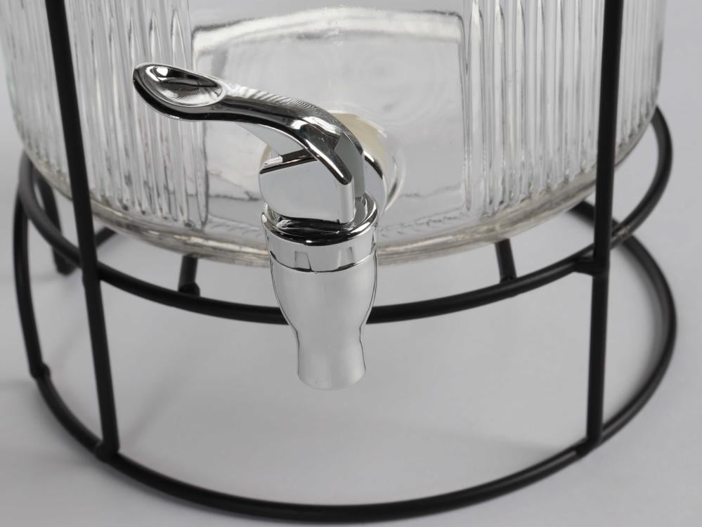 جيك عصير زجاجي بحنفية وحامل معدني سعة 5.5 لتر, مصنوع من زجاج شفاف ومتين يتحمل الاستخدام المتكرر، مع حامل معدني قوي وثابت, .يتميز الجيك بتصميم راقي وانيق وعملي، مثالي لتقديم المشروبات الباردة في المناسبات والتجمعات العائلية