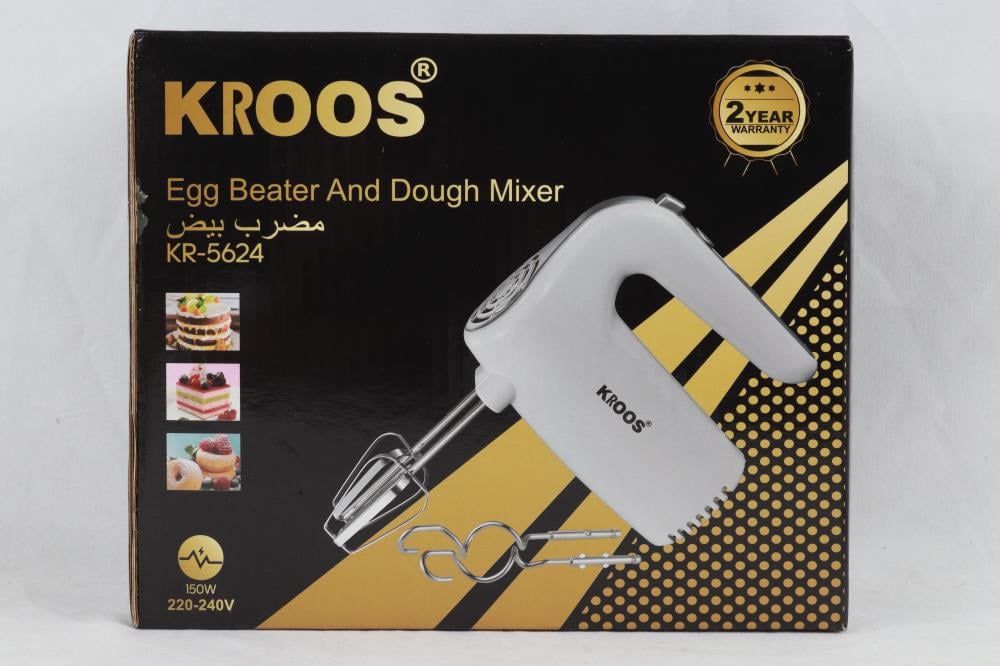 خلاط يدوي مع مضربين لخفق البيض والكريمة خطافان لخلط العجين 150 وات أبيض
