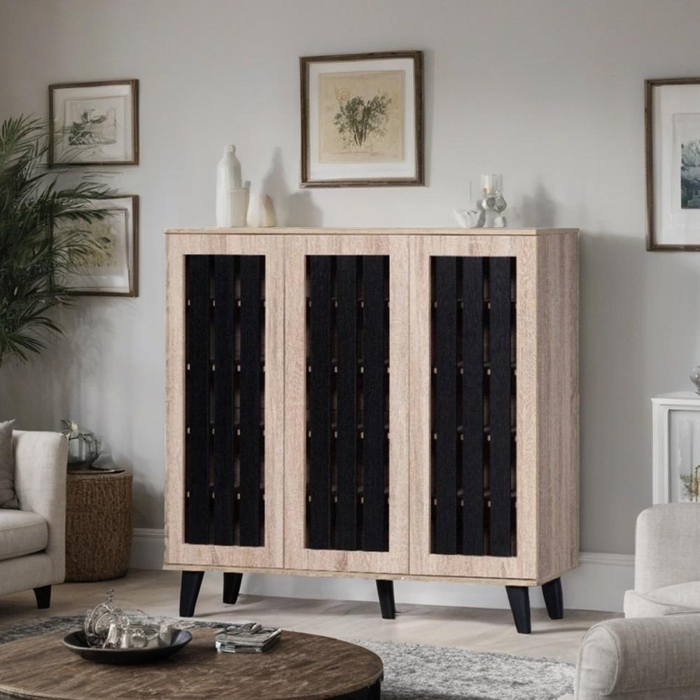 دولاب تخزين بتصميم عصري مكون من ثلاث أبواب، مناسب لغرف النوم أو المكاتب لتنظيم الملابس أو المستندات. يتميز بلونه العصري واستخداماته المتعددة، مع تقسيمات داخلية عملية لسهولة الترتيب.