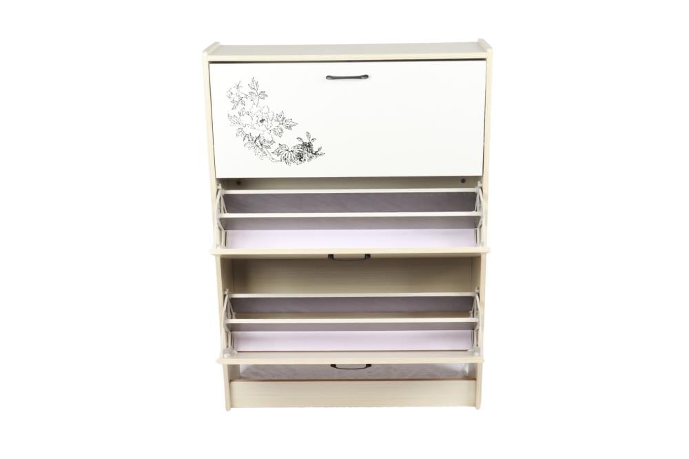 "استمتع بتنظيم أحذيتك بأناقة لا مثيل لها مع دولاب الأحذية العصري هذا. تصميم رائع يجمع بين الأناقة والوظائف العملية، يوفر لك مساحة تخزينية وفيرة لجميع أحذيتك المفضلة. مصنوع من مواد عالية الجودة لضمان المتانة والاستدامة. دولاب الأحذية الذي لا يقاوم!"