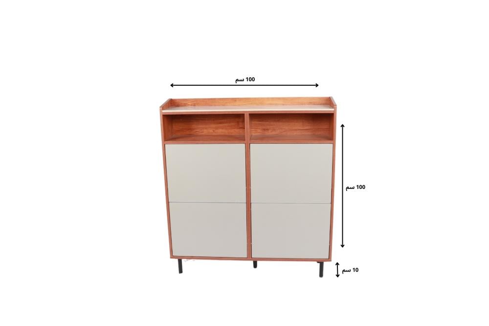 "استمتع بتنظيم أحذيتك بأناقة لا مثيل لها مع دولاب الأحذية العصري هذا. تصميم رائع يجمع بين الأناقة والوظائف العملية، يوفر لك مساحة تخزينية وفيرة لجميع أحذيتك المفضلة. مصنوع من مواد عالية الجودة لضمان المتانة والاستدامة. دولاب الأحذية الذي لا يقاوم!"