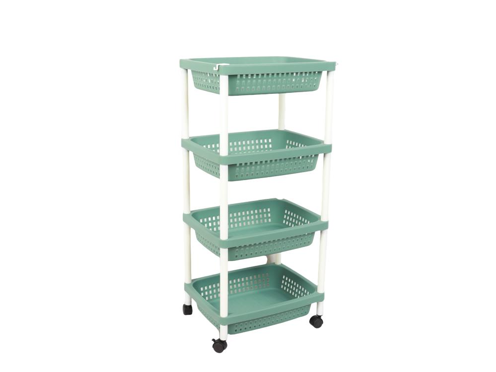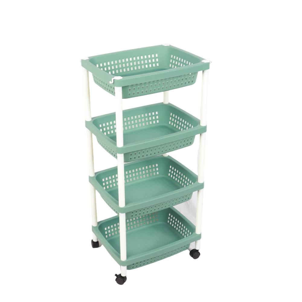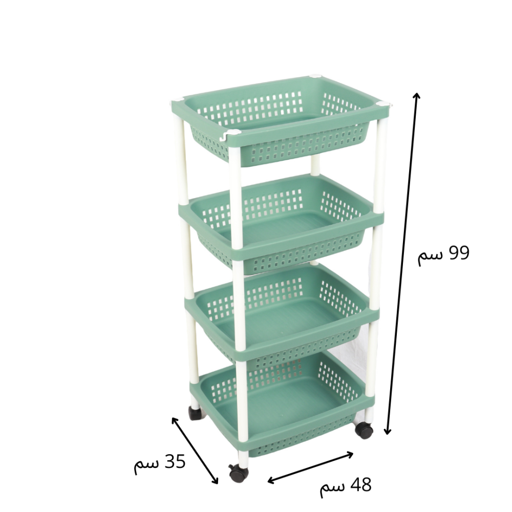 رف تخزين بلاستيك 4 رفوف بأربع عجلات للمطبخ باللون الأخضر