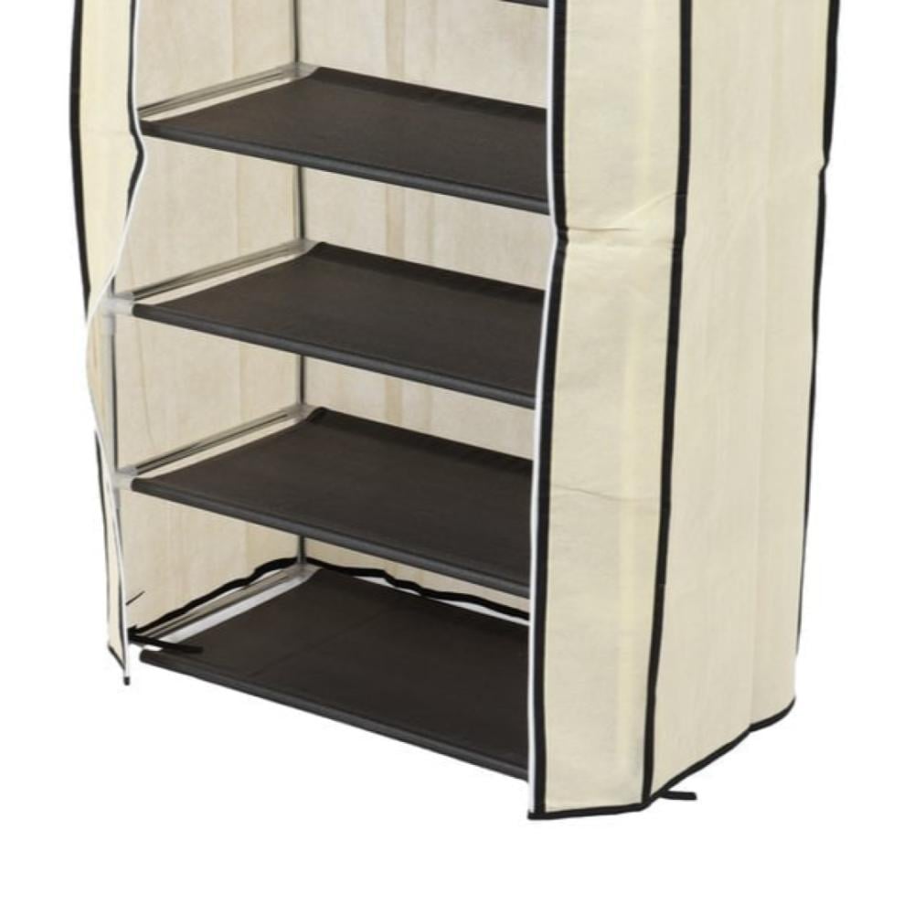 يعد هذا الرف الحل المثالي لتخزين أحذيتك بشكل منظم ومرتب. تم تصنيع الرف باستخدام مزيج من المواد عالية الجودة، حيث يوفر الإطار المعدني المتين القوة والثبات، بينما توفر الأرفف الخشبية الأفقية منطقة تخزين سميكة وقوية. بفضل تصميمه الذكي، يساعدك هذا الرف في توفير المساحة وتنظيم الأحذية بشكل مثالي في أي مكان.
