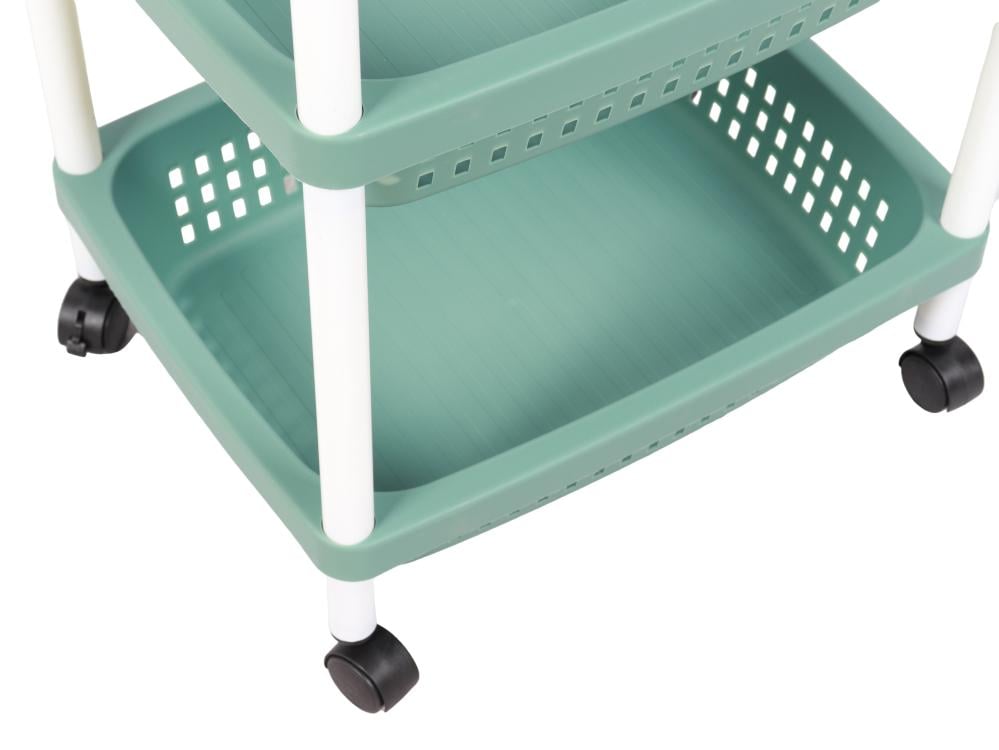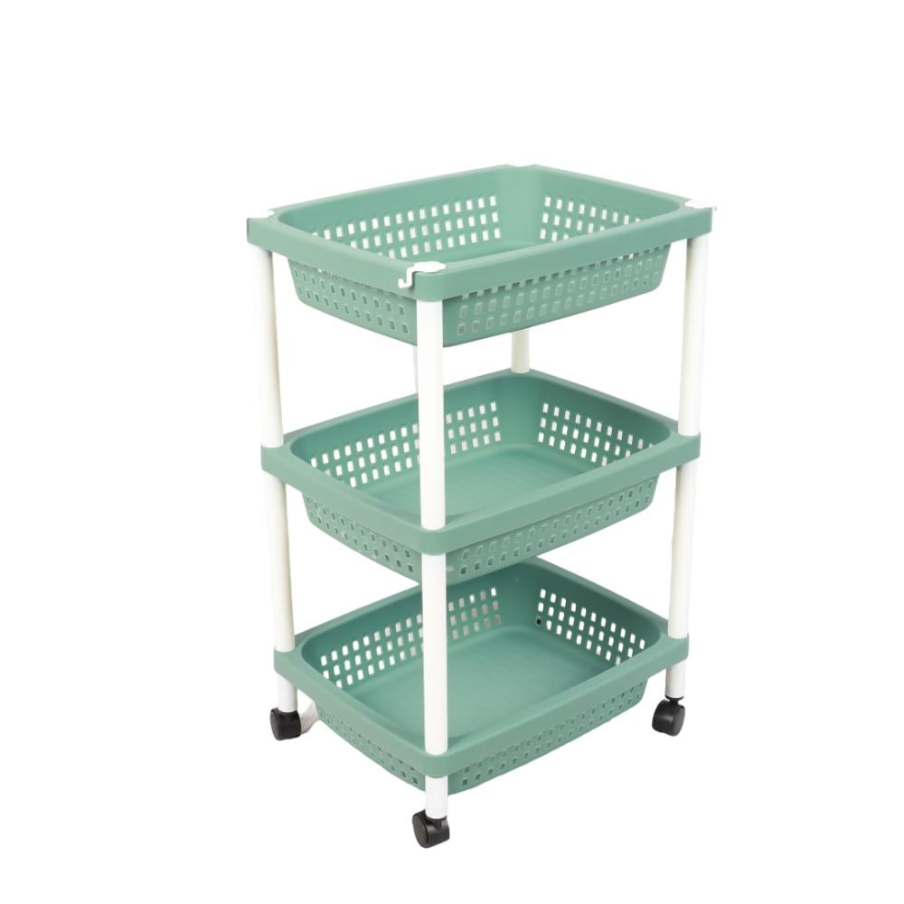 رف تخزين بلاستيك ثلاث رفوف بأربع عجلات للمطبخ
