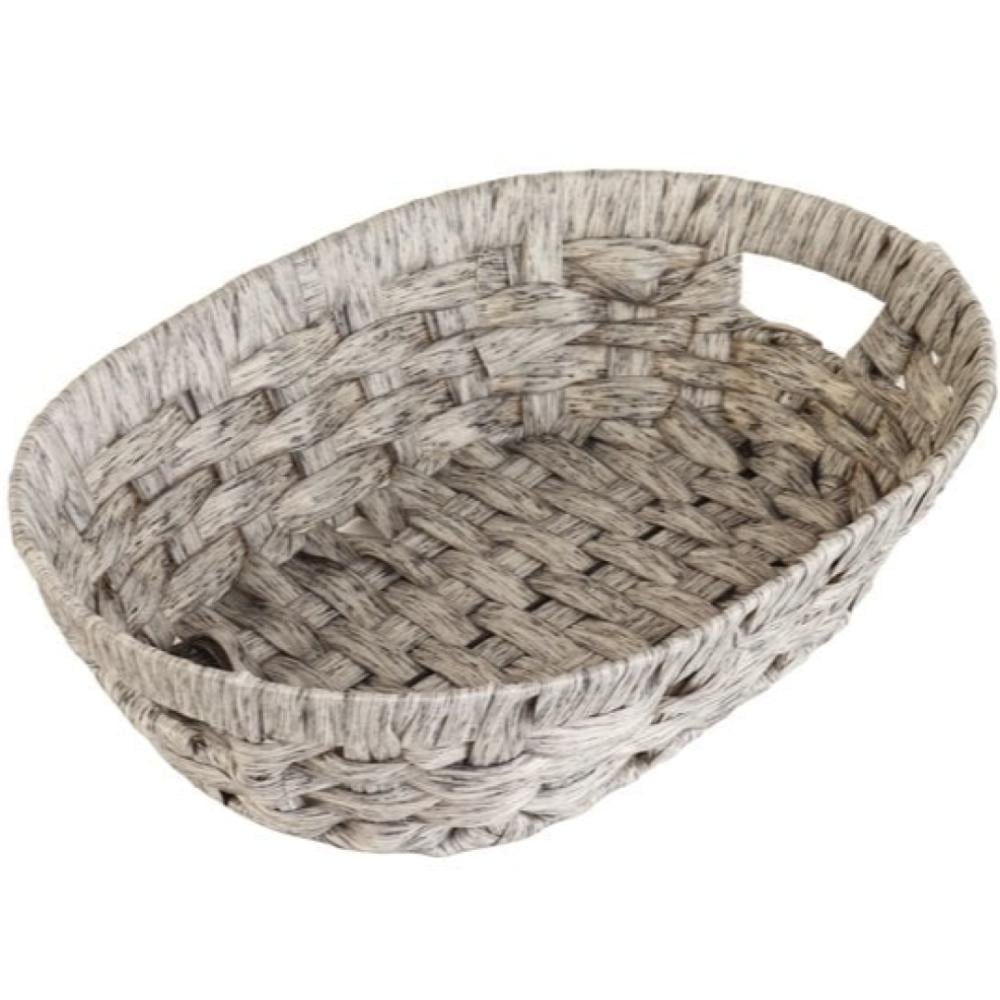 سلة خوص لتقديم الفواكه - اللون رمادي- الطول 37 سم، العرض 27 سم