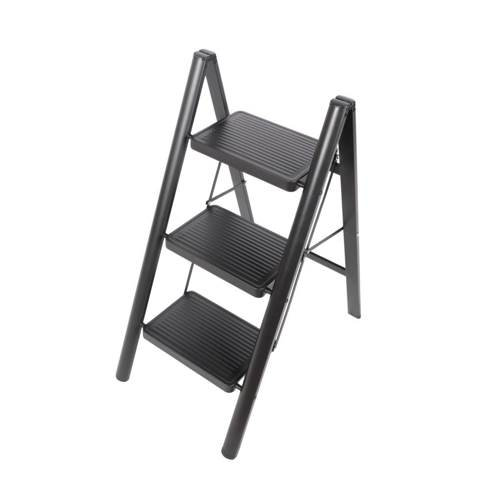 سلم أسود أنيق قابل للطي – متوفر بـ 2، 3، و4 درجات قوّة، أمان، وأناقة في تصميم واحد!