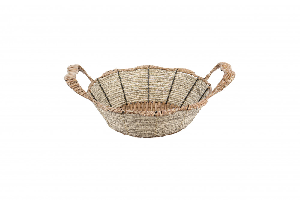 سلة خوص دائرية الشكل, مصنوعة من مواد عالية الجودة, مصممة تصميم عملي وكلاسيكي يناسب الاستخدام طويل الأمد , مع مقابض مريحة وانيقة, مثالية للفواكه والخضار والمخبوزات وغيرها