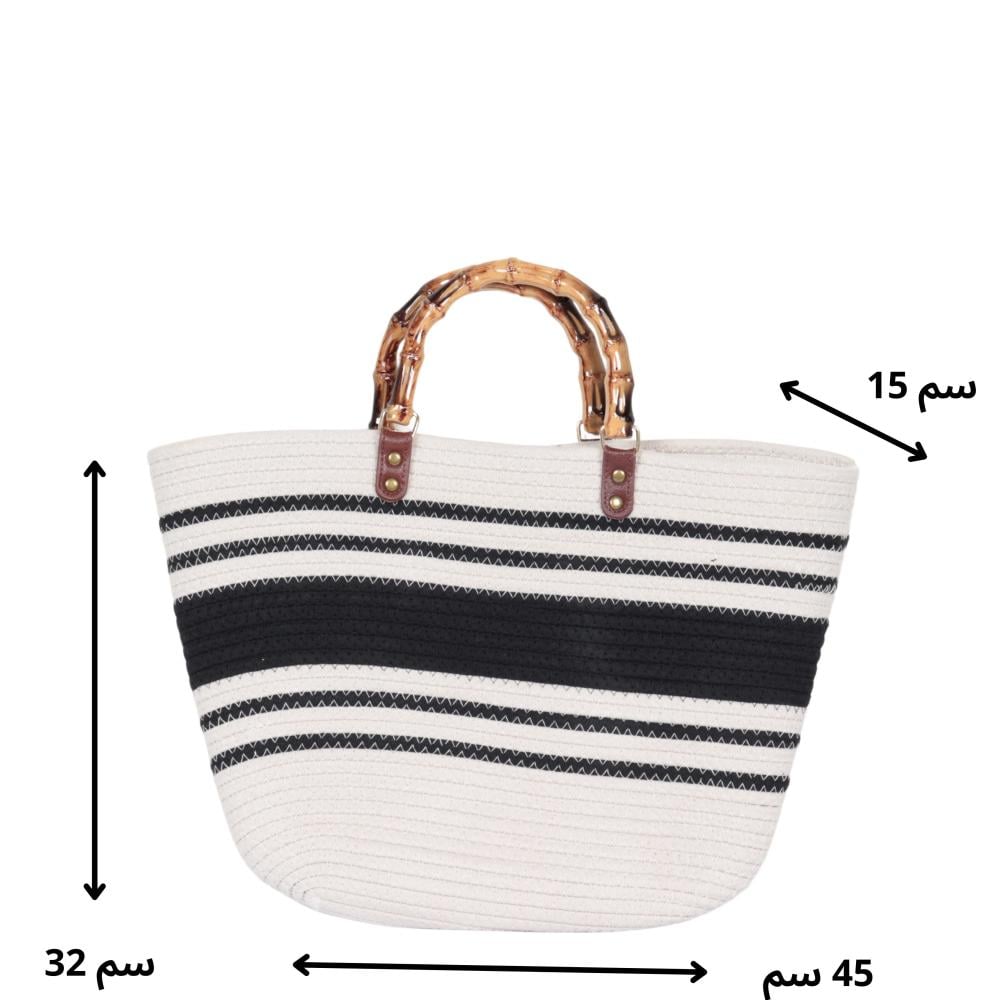 "اجمعي بين الراحة والأناقة مع هذه الحقيبة اليدوية العملية ذات المقبض الخشبي المريح. يوفر المقبض الخشبي قبضة ثابتة ومريحة عند الحمل، بينما يضفي لمسة جمالية أنيقة على التصميم العام للحقيبة. مصنوعة من متين وعملي، تعتبر هذه الحقيبة الخيار المثالي ليومك الحافل، حيث تجمع بين الأناقة والوظيفة."