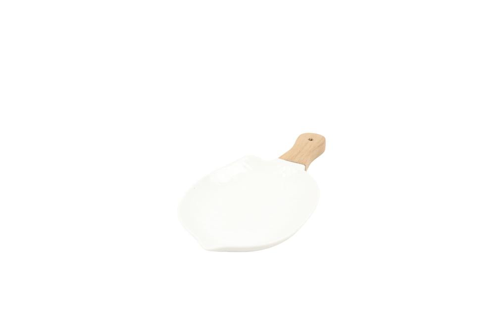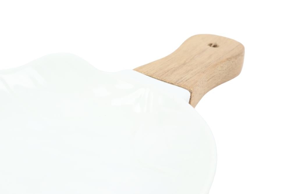 تتميز هذه الصينية بتصميمها الفريد والجذاب، حيث تجمع بين الأناقة والوظائف العملية بأسلوب رفيع. مصنوعة من السيراميك الأبيض عالي الجودة، تعكس هذه الأداة نقاء المواد ودقتها في التصنيع، بينما يضفي المقبض الخشبي لمسة طبيعية ودافئة تزيد من جاذبيتها.