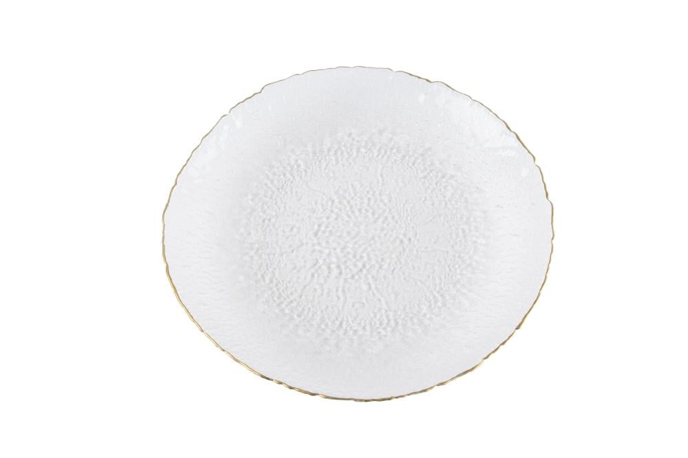صحن مميز من الزجاج مزخرف بالورود الجميلة تكون من قطعه بلون أبيض ناصع ، مثالي لتقديم الأطباق الجانبية، الحلويات، أو المقبلات .