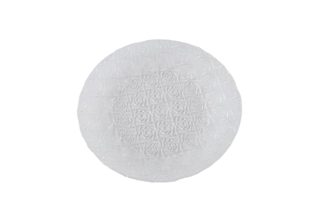 صحن مميز من الزجاج مزخرف بالورود الجميلة تكون من قطعه بلون أبيض ناصع ، مثالي لتقديم الأطباق الجانبية، الحلويات، أو المقبلات .