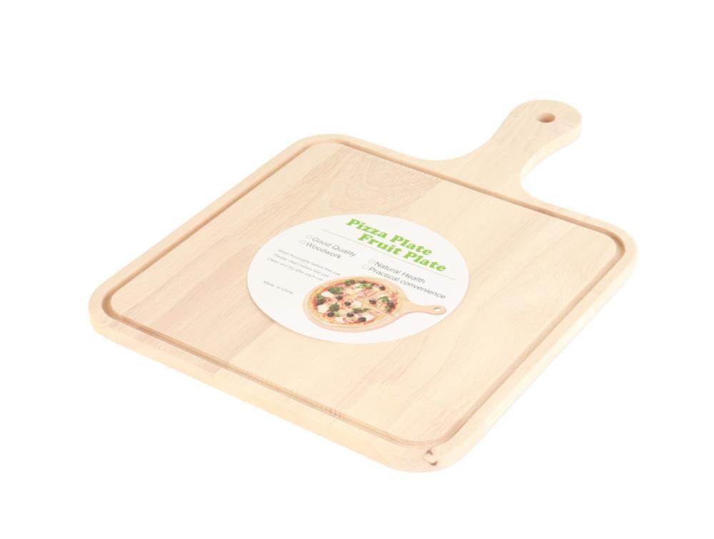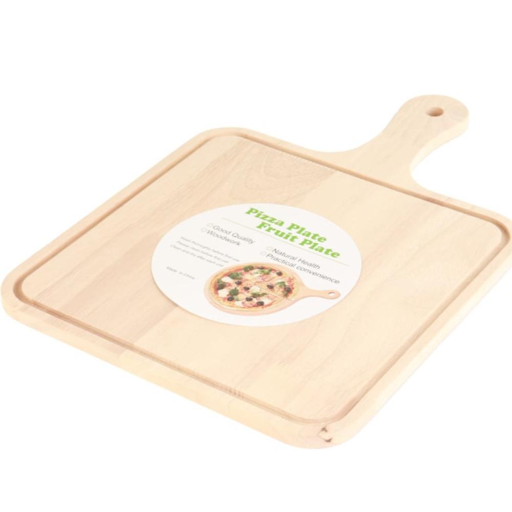صينية تقديم بيتزا خشبية مربعة لون بيج
