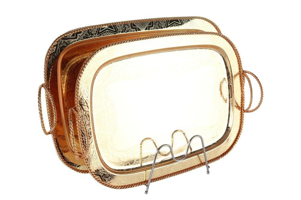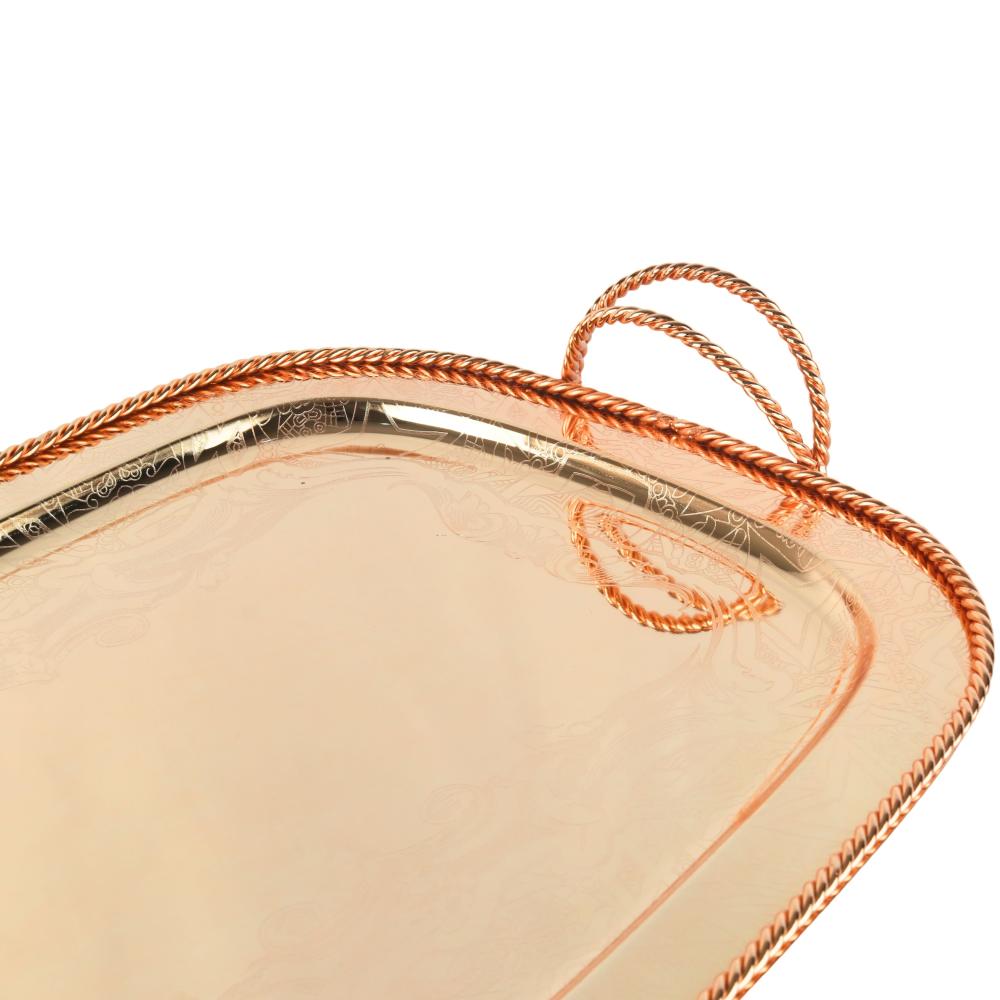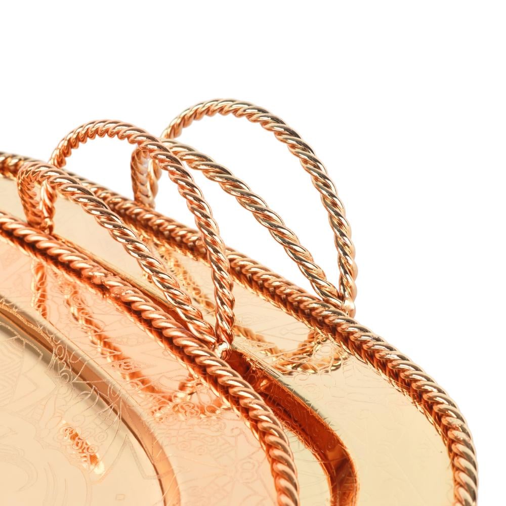 اجعل صينية التقديم الفاخرة من الستانلس ستيل بلون ذهبي مع مقبضين مزخرفين جزءًا من أدوات المائدة الخاصة بك، واستمتع بتقديم الطعام بأناقة وفخامة في كل مناسبة!