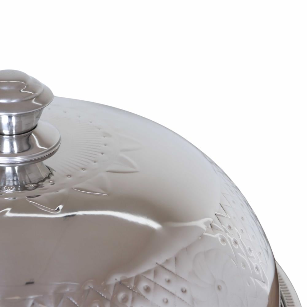 استمتع بتقديم أطباق الغوزي الشهية والمميزة بأناقة وفخامة مع هذا الصحن الدائري الكبير المصنوع من الاستانلس ستيل عالي الجودة والمزود بمقبض عملي للغطاء.