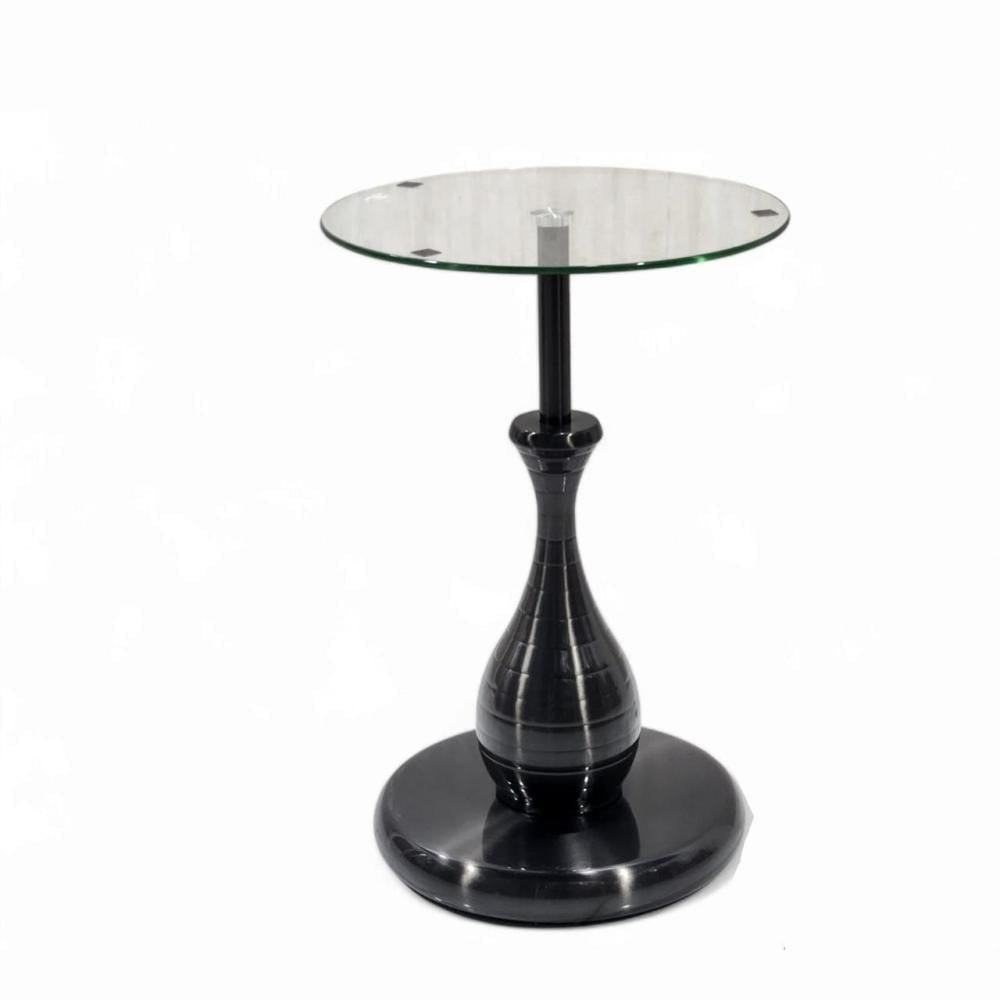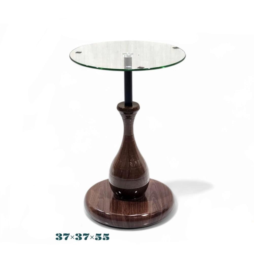 تتضمن الطاولة سطحاً دائرياً من الزجاج الشفاف، مما يضيف لها لمسة من الرقي والشفافية،