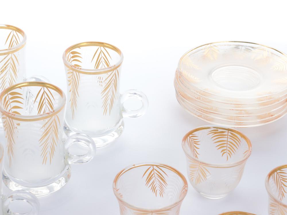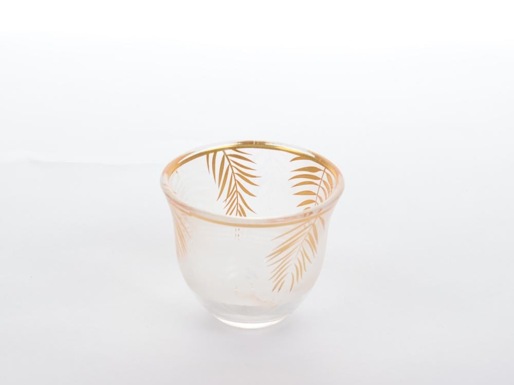 طقم بيالات شاي وفناجين قهوة زجاجي بنقوش سعف النخيل الفاخرة
