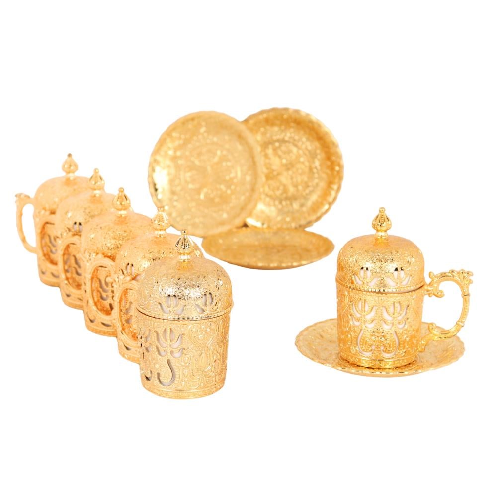 أضف لمسة من الفخامة إلى ضيافتك مع طقم بيالات راقٍ بتفاصيل مذهبة أنيقة وغطاء يحافظ على حرارة المشروب ونقائه. مثالي لجلسات الشاي والقهوة العربية، ويمنح ضيوفك تجربة ضيافة استثنائية.