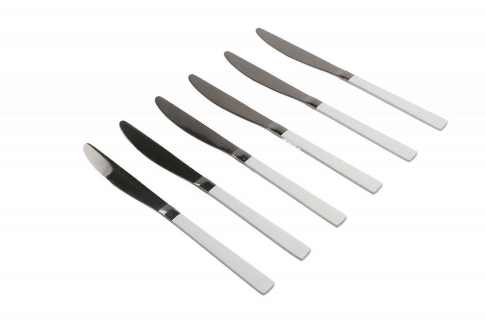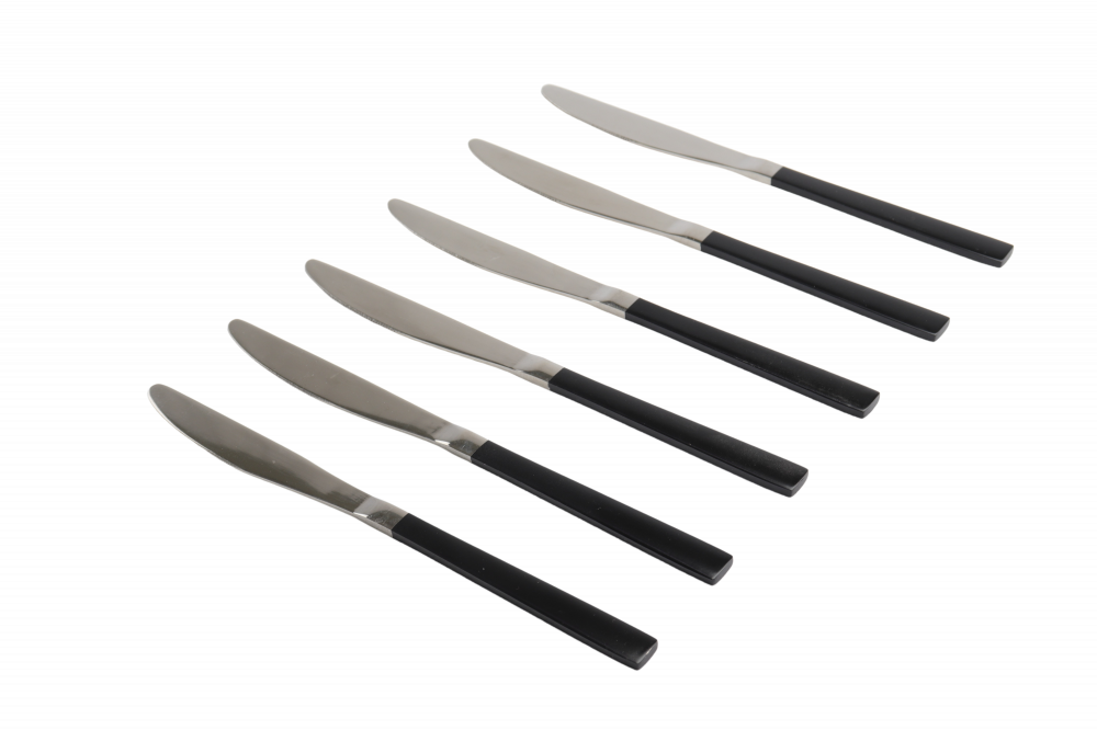 طقم سكاكين طعام 6 حبه من شركة هوم فيو, مصنوع من الاستيل عالي الجودة, طقم سكاكين بتصميم فاخر وكلاسيكي مناسب للتقديم و الاستعمال اليومي, مصنوع من مواد عالية الجودة لاستخدام طويل الأمد, سهل الاستعمال و التنظيف. يتميز هذا الطقم بمقابض سميكة لتوفير المتانة وحواف ناعمة ومنحنية للسلامة والأناقة والعملية.
