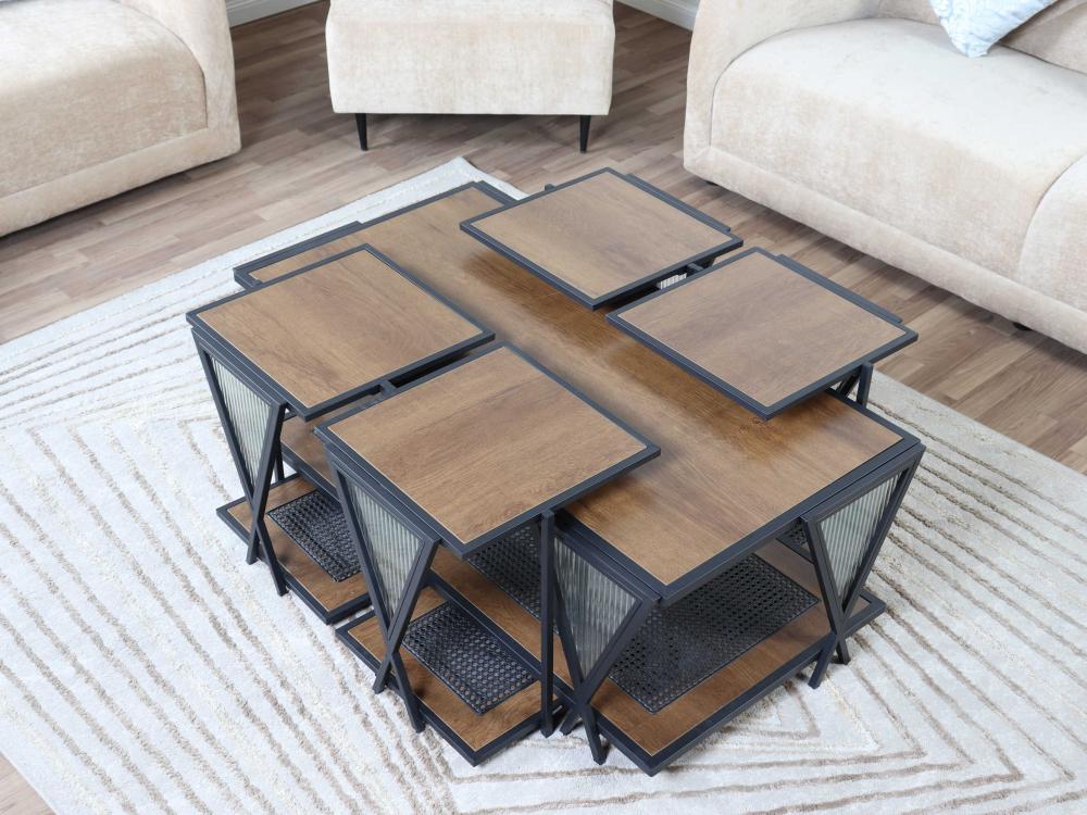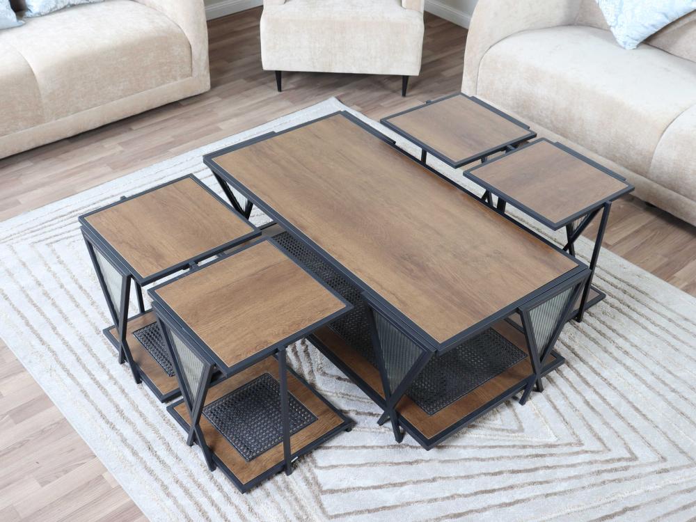 • أربع طاولات صغيرة: يمكن استخدامها بشكل منفصل لتقديم المشروبات والوجبات الخفيفة، أو توزيعها في أنحاء الغرفة.