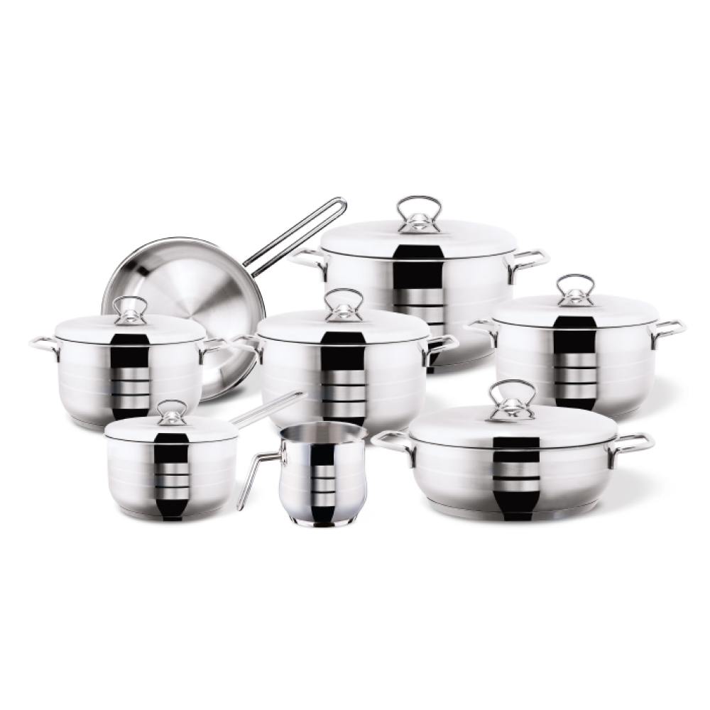 طقم قدور و أواني طهي من الستانلس ستيل المانع للإلتصاق 14 قطعة