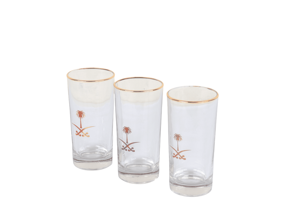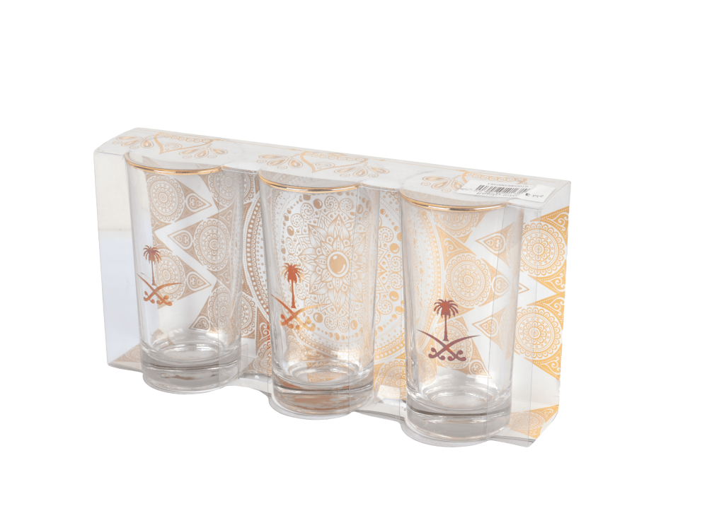 طقم كاسات زجاج 3 قطع, مصمم بشكل انيق يعكس الهوية الوطنية السعودية.