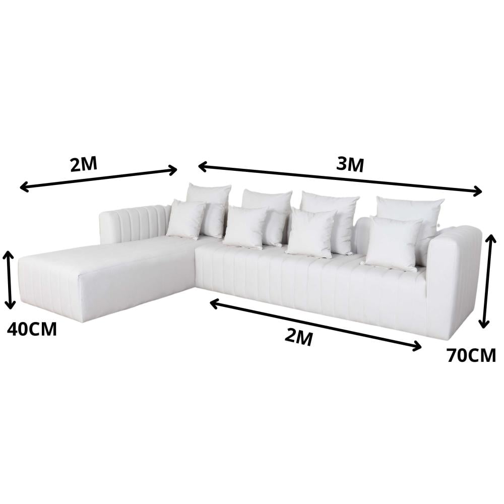 بفضل طولها البالغ 3 أمتار، توفر هذه الكنبة مساحة جلوس واسعة ومريحة لجميع أفراد العائلة والضيوف. أما تصميمها على شكل حرف "L" بعرض 2 متر، فيمنحك زاوية استرخاء مثالية للاسترخاء ومد الساقين بعد يوم طويل،