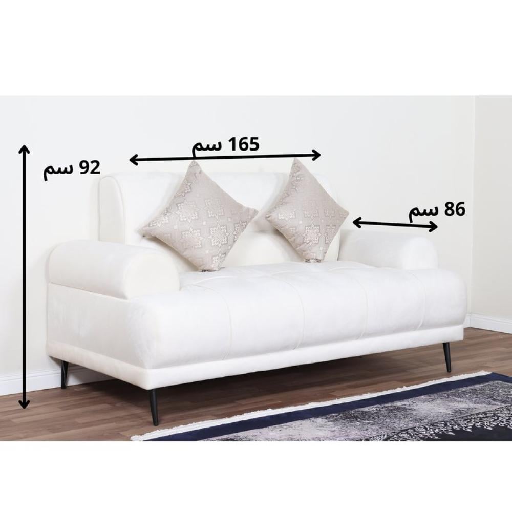 طقم كنب 10 أشخاص - قماش مخمل أبيض بأرجل ستانلس ستيل