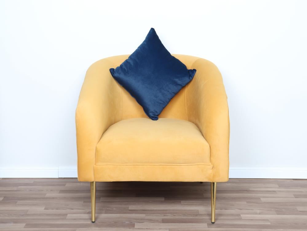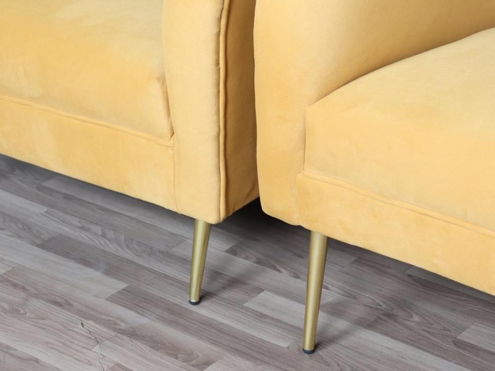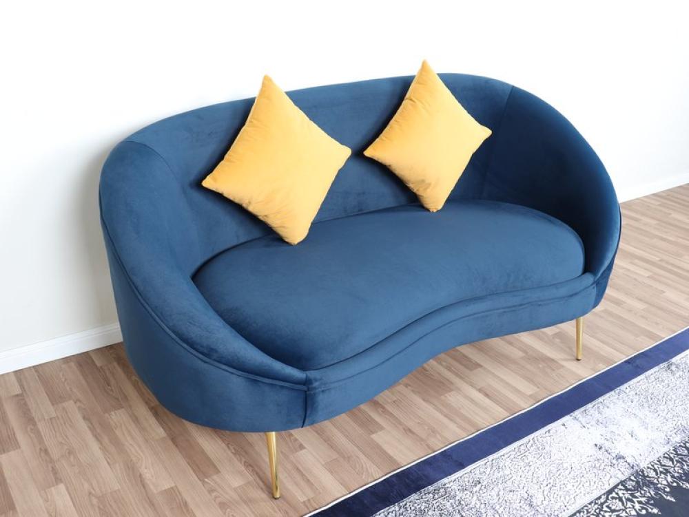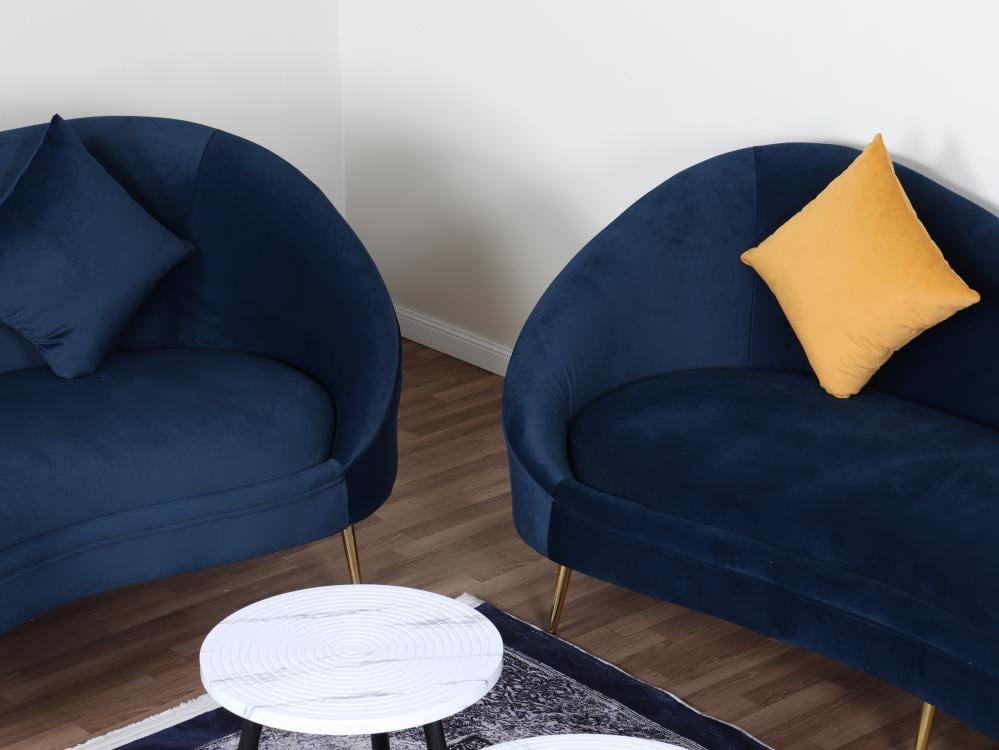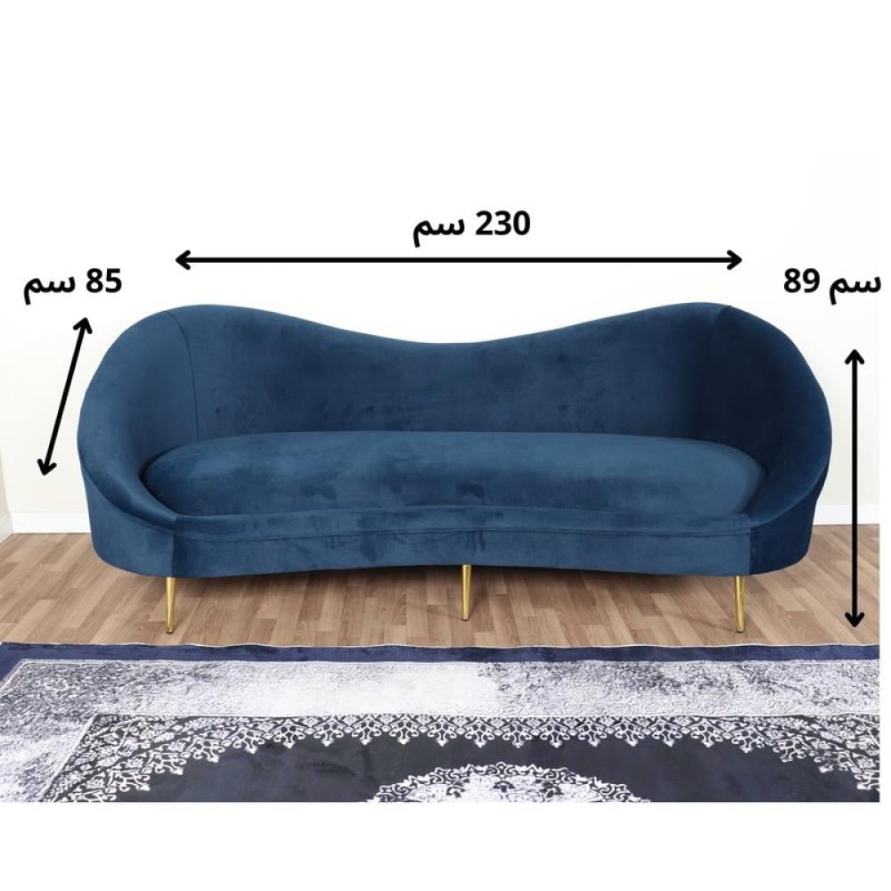 طقم كنب 7 أشخاص مخمل بأرجل ستانلس ستيل مذهبة - أزرق وبرتقالي