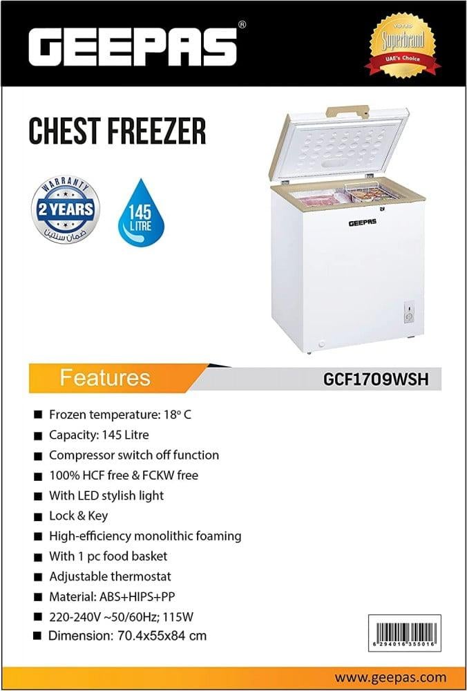 • درجة حرارة التجميد: 18 درجة مئوية؛ السعة: 145 لتر