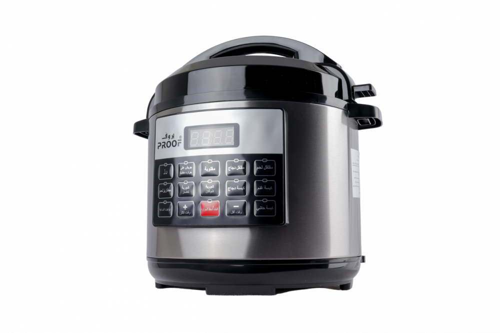 قدر ضغط كهربائي من شركة بروف 8 لتر مصنوع من الاستانلس ستيل المقاوم للصدا من الخارج, ومن الداخل من مادة التيفال الغير لاصقة, كما انه يحتوي على شبك مندي ضد الالتصاق ومقبض وسدادة هواء من البلاستيك المقاوم للحرارة, قدر الضغط الكهربائي من بروف يتيح لك فرصة الابداع والتنوع في الاطباق حيث انه يوفر 11 خيار للطبخ, كما يمكنك توقيت قدر الضغط للعمل الان او في وقت لاحق وتحديد مدة الطهي, عند انتهاء مدة الطهي يغلق تلقائيا مع الحفاظ على حرارة الطعام لساعات, امن جدا لاحتوائه على بدي خارجي عازل للحرارة, سهل الاستخدام والتنظيف ويوفر عليك الكثير من الوقت والجهد, الجهد 220 فولت التردد 50-60 هرتز