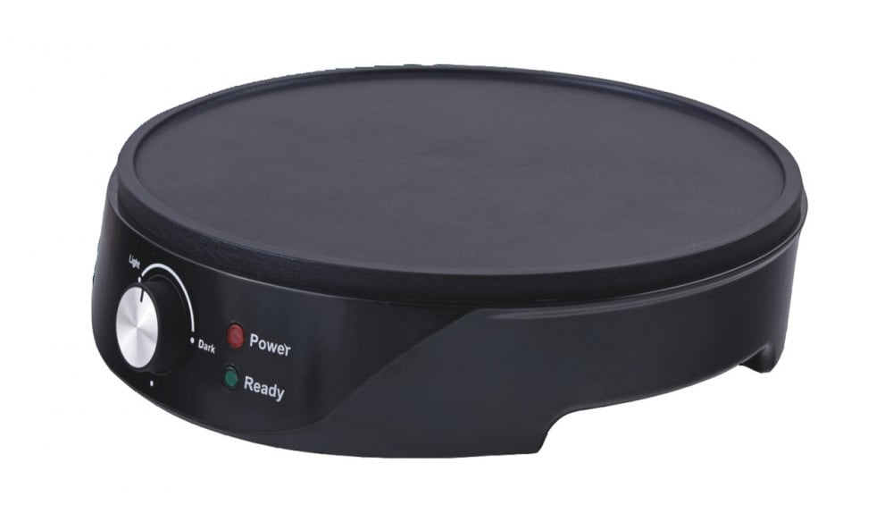 الة صنع الكريب والمصابيب من شركة هوم ماستر 12 بوصة, تتميز بسرعة ومتانة في الاداء كما انها توفر الطاقة حيث لا تحتاج الى تشغليها لفترة عمل طويلة, اسطح غير قابلة للالتصاق وسهلة التنظيف والاستخدام, مفتاح للتحكم بالحرارة المطلوبة, بقوة 1200 واط