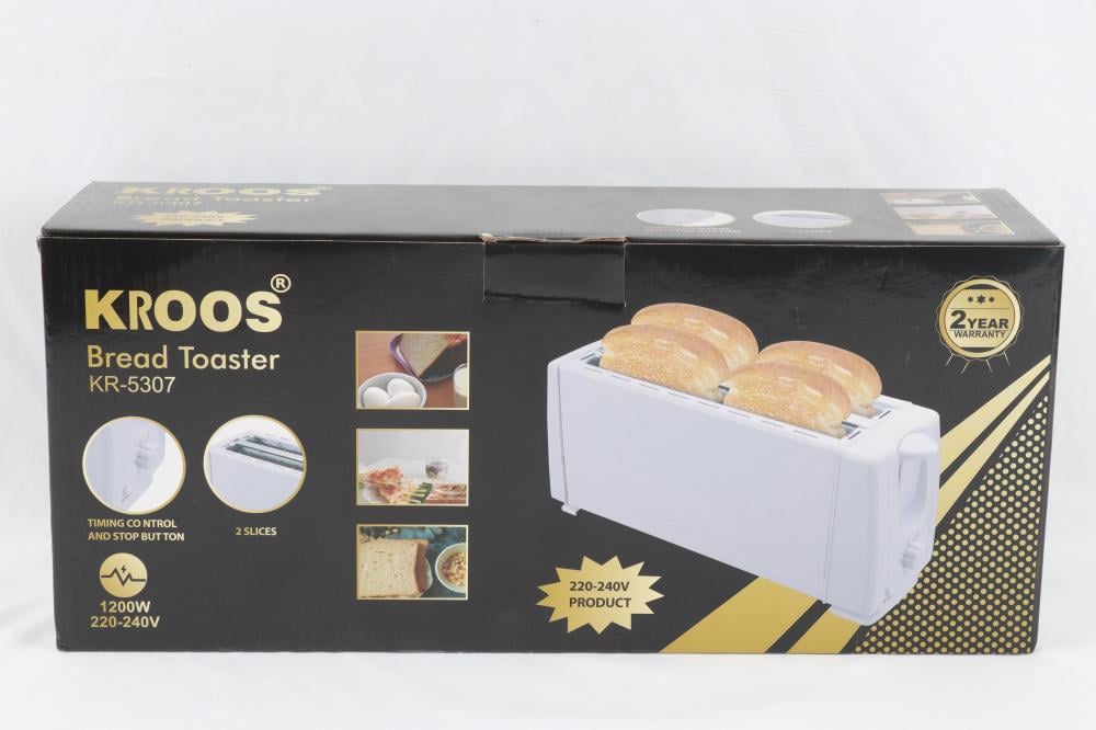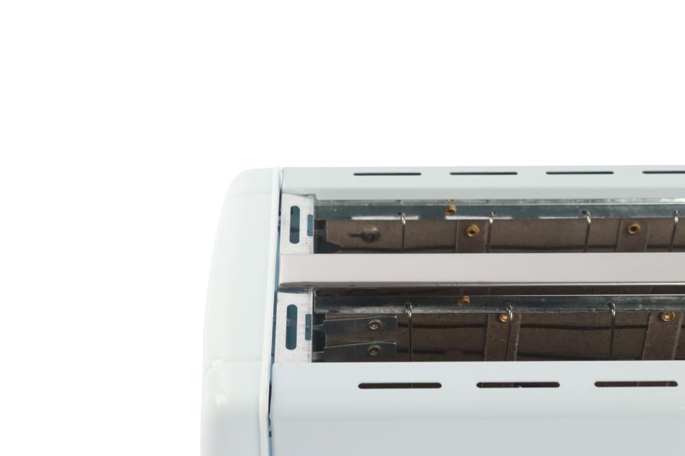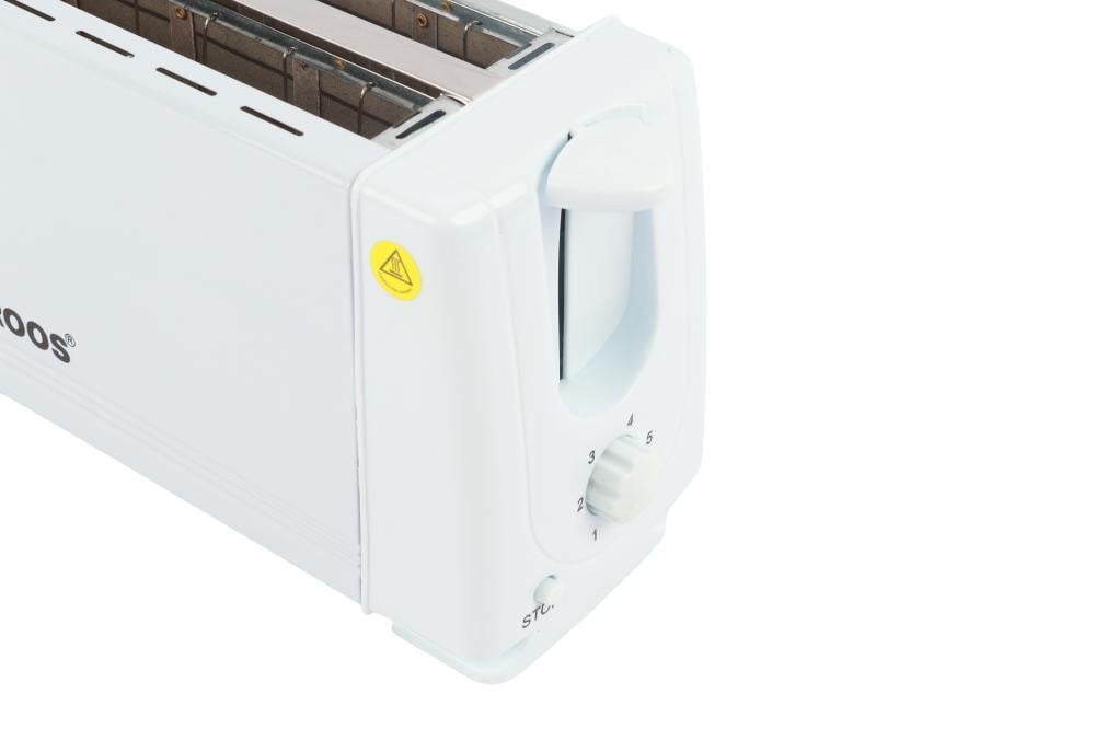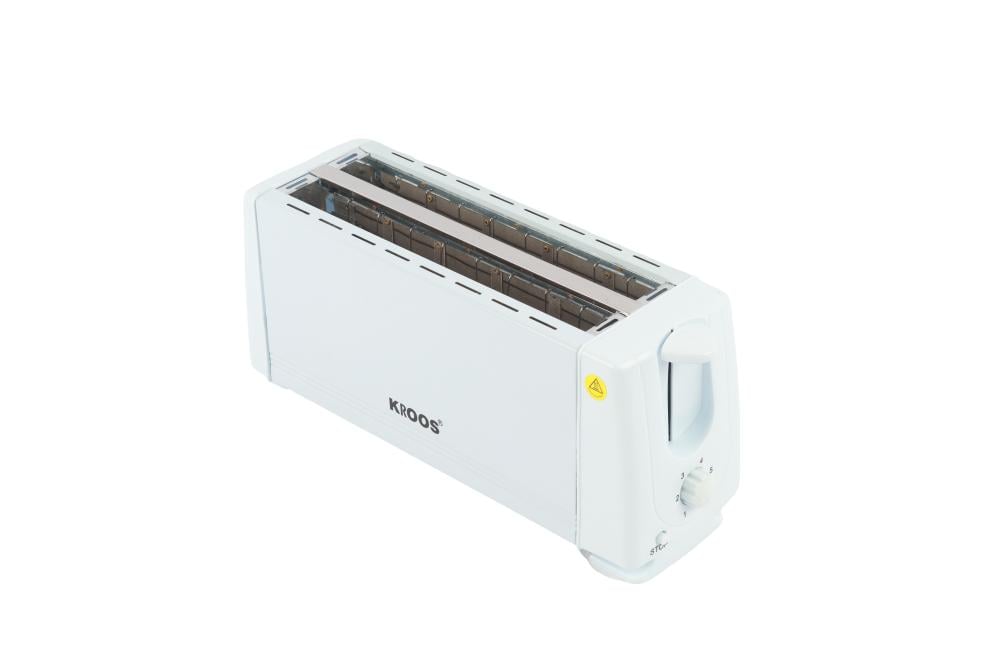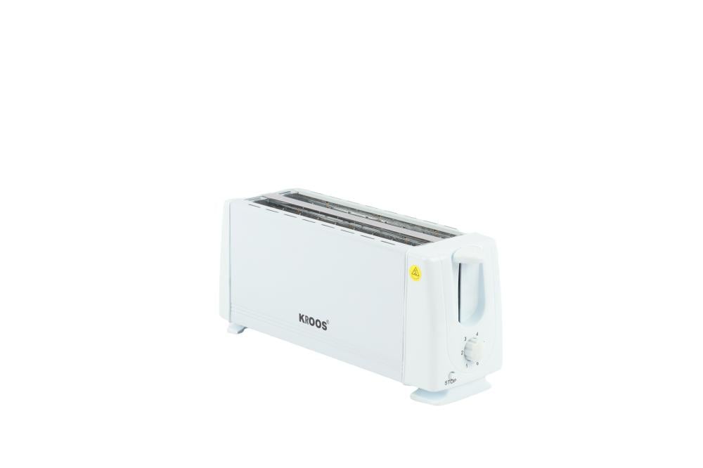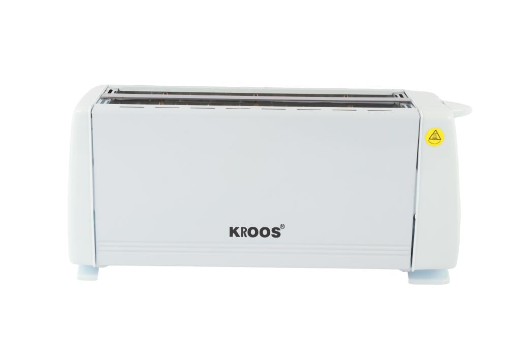 محمصة توست 4 شرائح غطاء من الفولاذ المقاوم للصدأ ازالة صينية الفتات للخارج بقدره 1200 وات أبيض