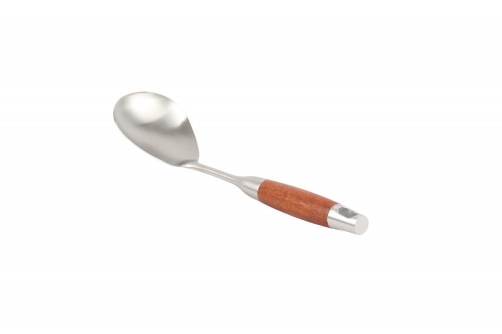 ملعقة غرف طعام مصنوعة من استيل عالي الجودة, مصممة بمظهر عصري بيد خشبية انيقة, مقاومة للصدأ والتأكل, مناسبة للطبخ و التقديم