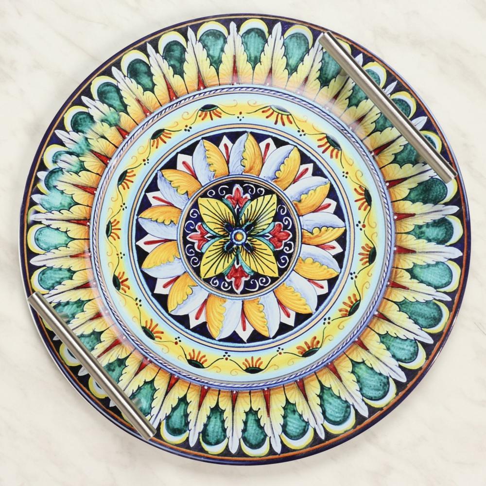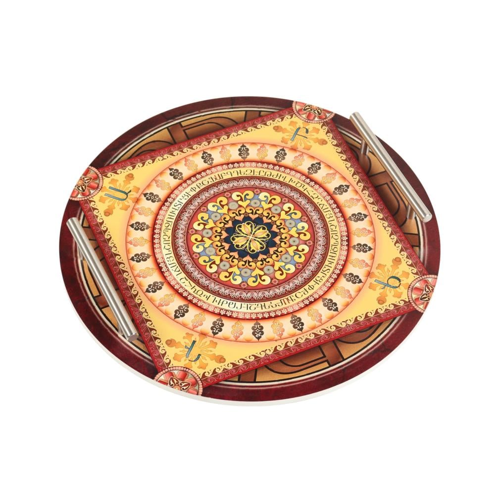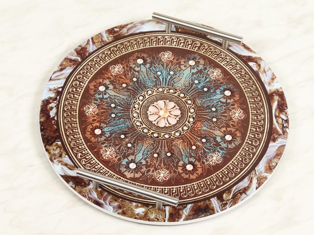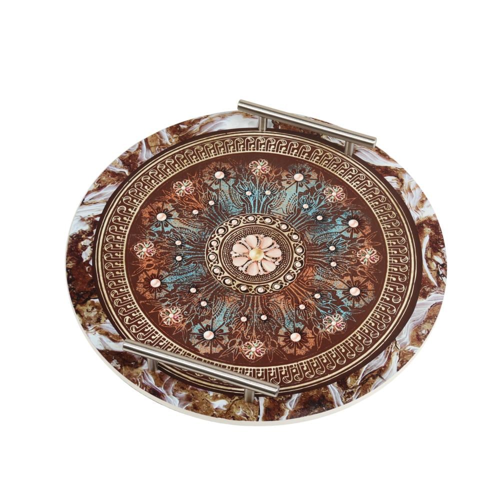 قطعة فنية تجمع بين الجمال العملي وروح الأصالة، مصنوعة من خشب عالي الجودة بلمسات يدوية تضفي عليها طابعًا دافئًا وأنيقًا. تتميز بتصميم دائري مزخرف بدقة، يجعلها مثالية لتقديم الضيافة أو استخدامها كقطعة ديكور راقية في منزلك. تضيف لمسة من الفخامة والتميز لكل مناسبة.