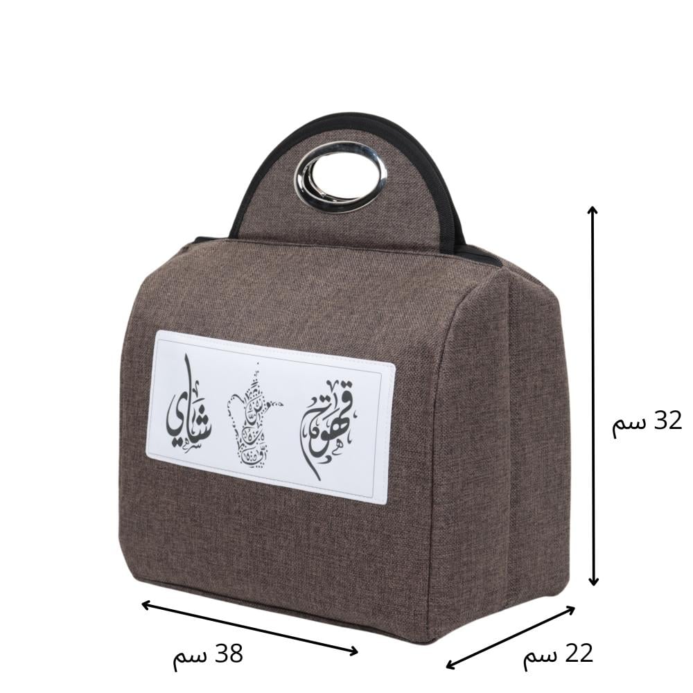 سلة عملية وأنيقة مصممة خصيصًا لحمل ترمس الشاي والقهوة وأدوات الضيافة الأخرى. تتميز بسحاب قوي لإغلاق محكم يحافظ على المحتويات بأمان، ومقبض مريح يضمن سهولة الحمل والتنقل. مصنوعة من مواد عالية الجودة مقاومة للتآكل والأوساخ، ما يجعلها مثالية للاستخدام اليومي والرحلات.