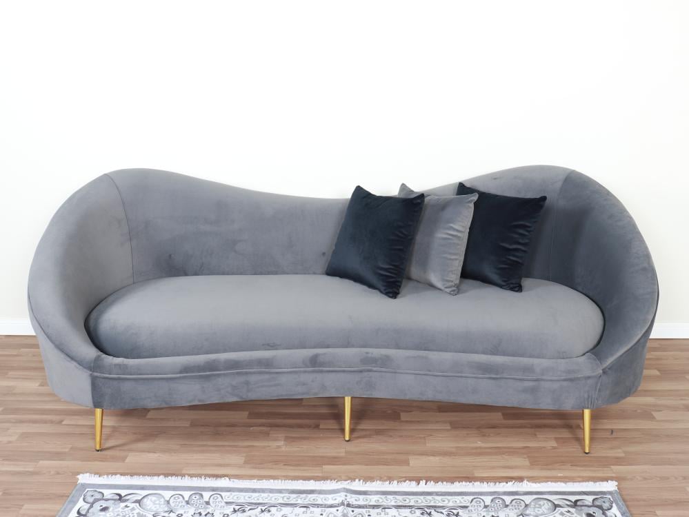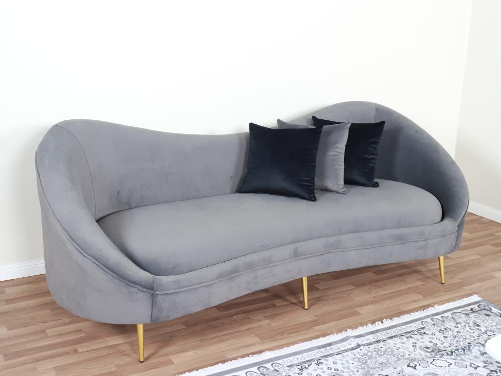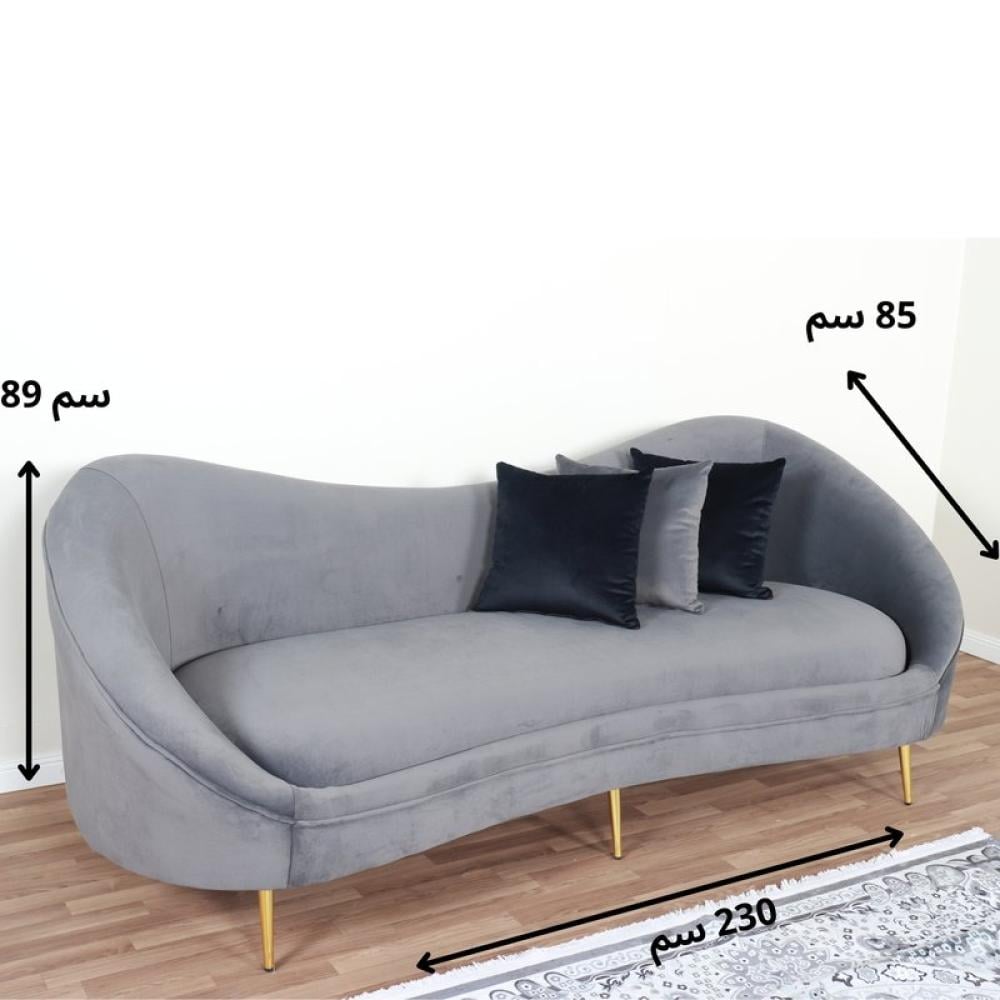 طقم كنب 8أشخاص مخمل بأرجل ستانلس ستيل مذهبة -رمادي واسود